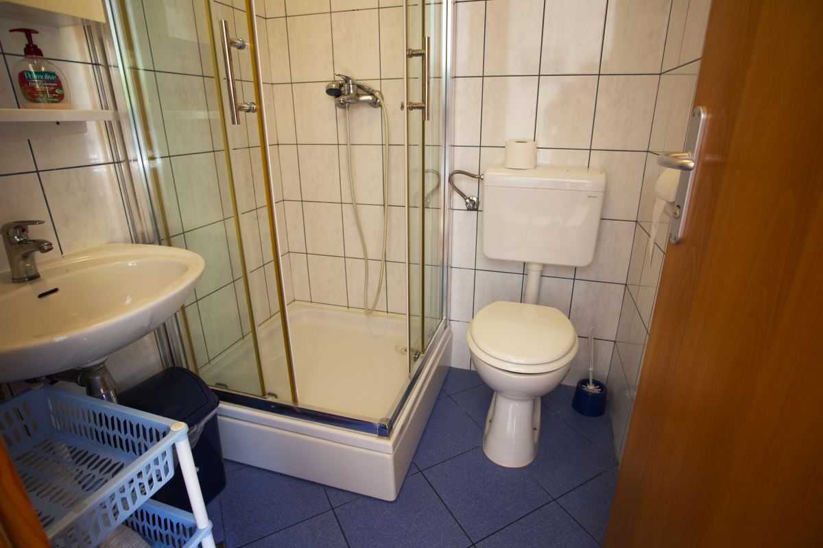 It has a kitchen and a bathroom. Studio has a double bed, dining table and 2 chairs, TV and kitchen. The kitchen is equipped with dishes, a stove with two cooking plates, a refrigerator with a freezer and an electric kettle. The bathroom with shower is a separate room within the studio.The facility offers guests one parking space within the facility.