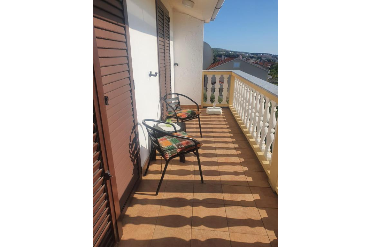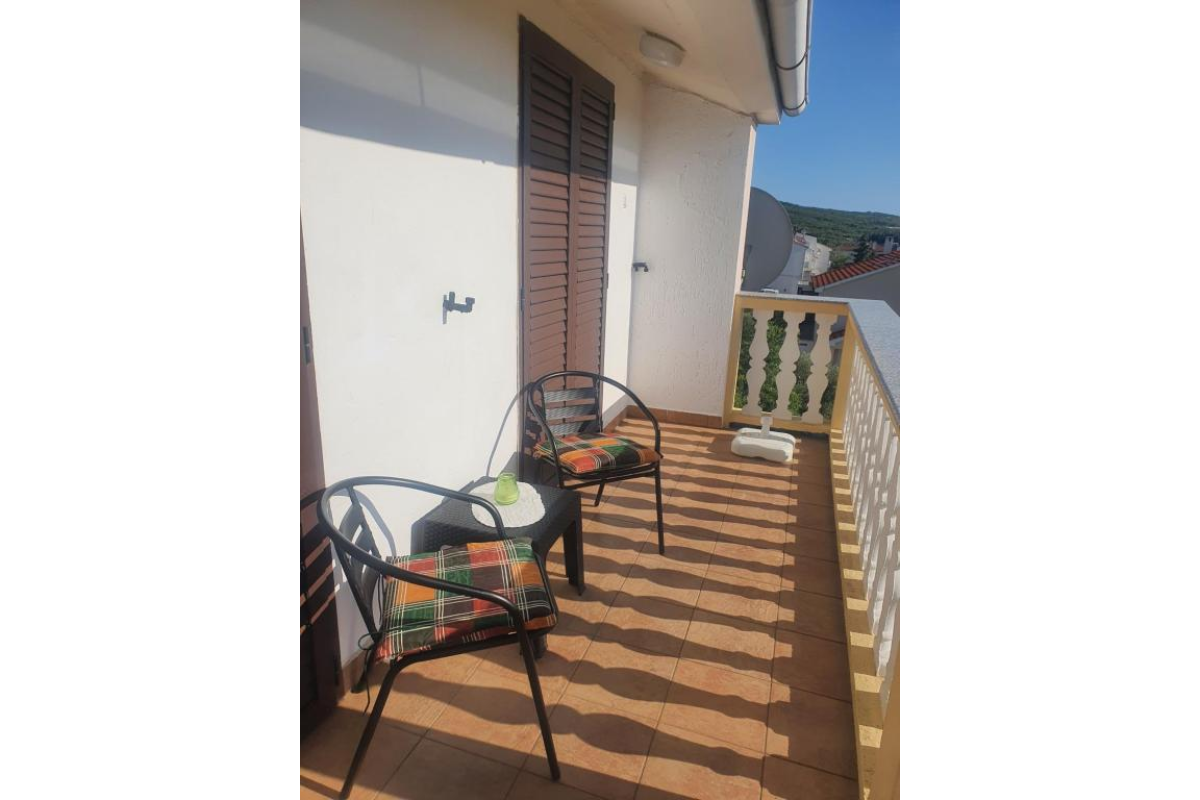 one smaller balcony in front of the entrance to the apartment and a large balcony with a beautiful view of the town of Punat