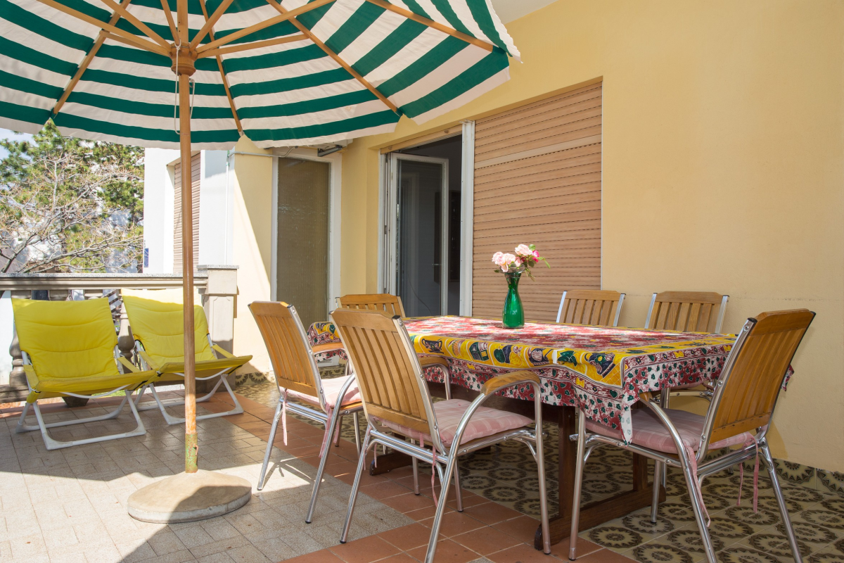 Die Wohnung befindet sich in einem Haus und ist rustikal und einfach eingerichtet. Das Grundstück liegt am Ende einer Sackgasse. Vom Grundstück aus hat man Blick auf den Garten. Die Anlage ist aufgrund ihrer ruhigen und sonnigen Lage beliebt. Zur Nutzung stehen zur Verfügung: Sonnenschirm, Liegestühle, Terrasse, Gartenmöbel und Hof.