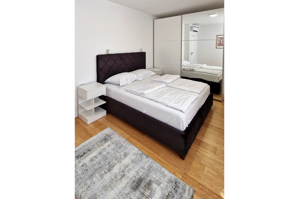 Dieses ruhige, klimatisierte Apartment verfügt über 2 Schlafzimmer mit Kingsize-Betten und TV sowie ein Wohnzimmer mit Couch, Couchtisch und Flachbildfernseher. Der Essbereich ist sowohl mit dem Wohnzimmer als auch mit der Küche verbunden. Die Küche verfügt über einen eigenen Geschirrspüler und eine Mikrowelle. Innerhalb der Wohnung ist es auch möglich, auf der Terrasse zu entspannen. Handtücher und Bettwäsche sind in der Wohnung vorhanden.