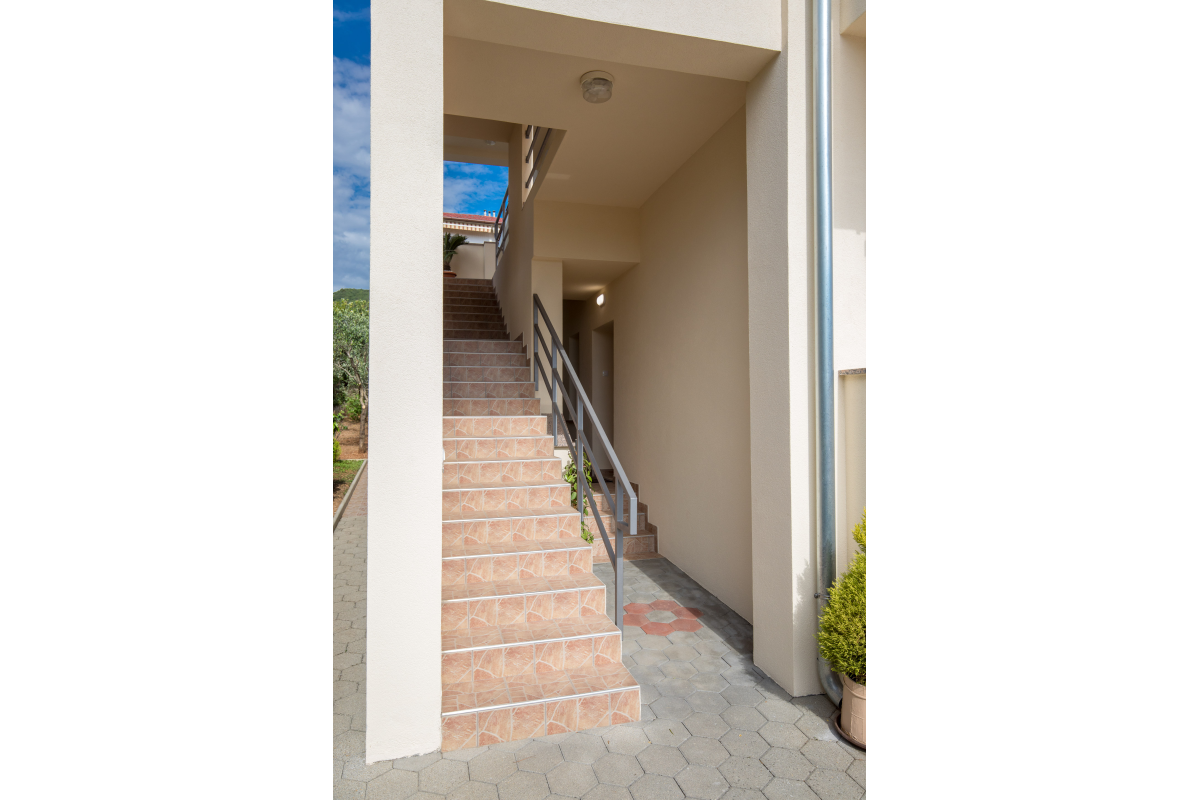 Apartman se nalazi u kući i jednostavno je namješten. Nekretnina se nalazi na kraju slijepe ulice. S imanja se pruža pogled na vrt. Zbog svoje mirne i sunčane lokacije, zgrada je vrlo popularna. Za vašu ekskluzivnu upotrebu na raspolaganju su: suncobran, ležaljke, vrtni tuš, roštilj, terasa i vrtni namještaj.