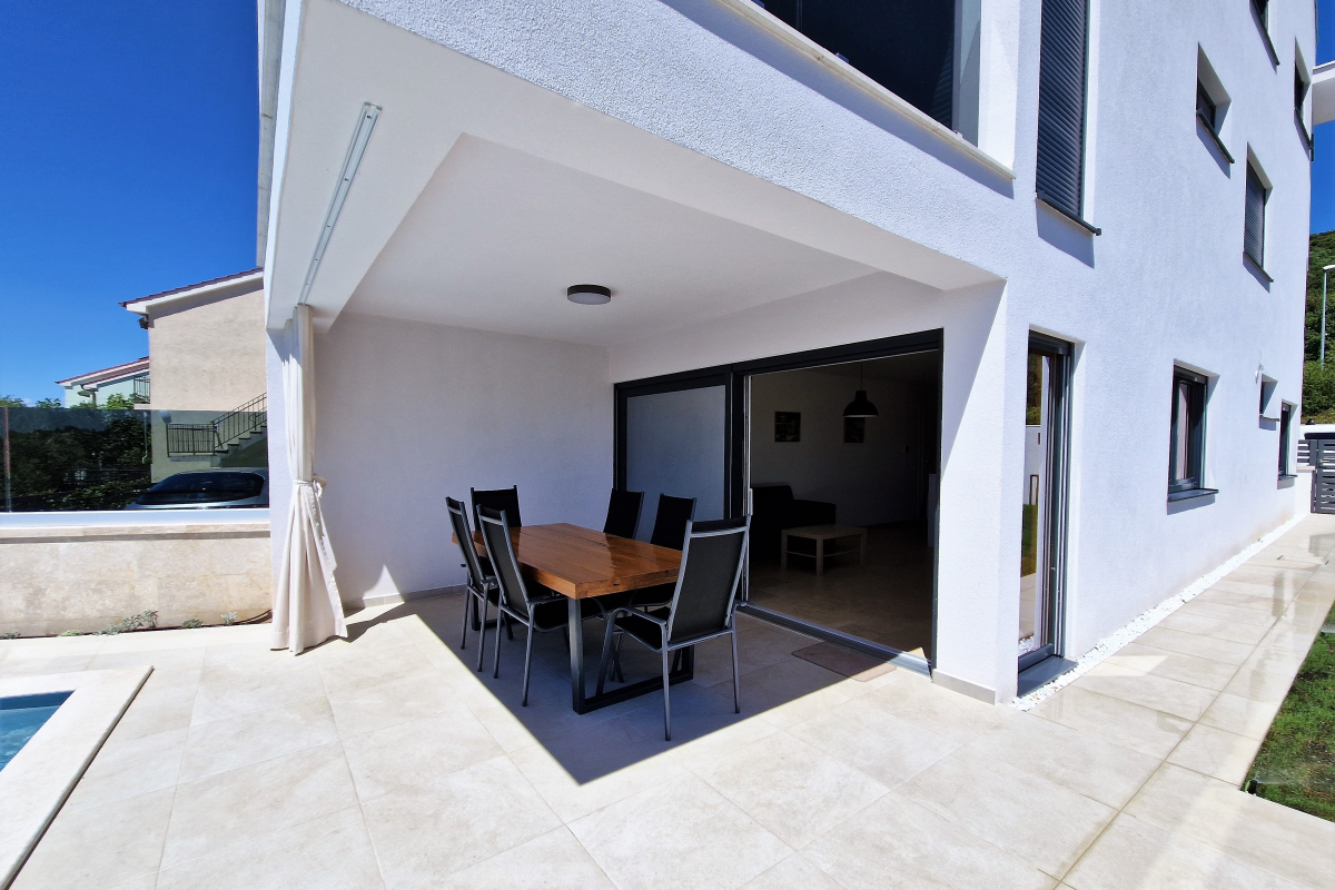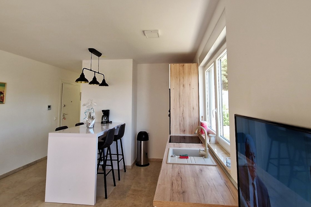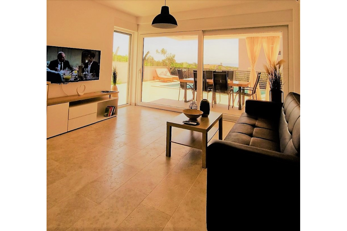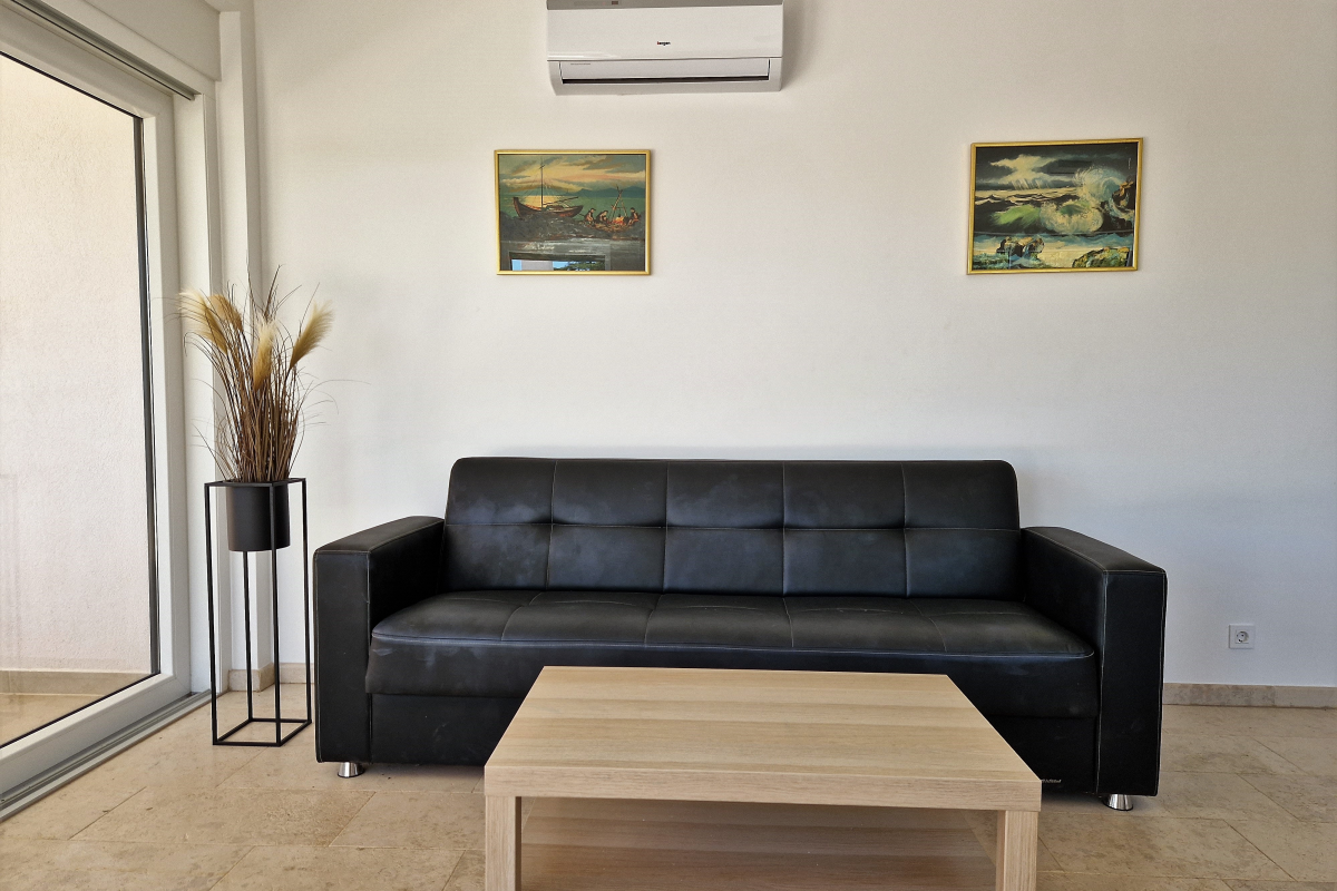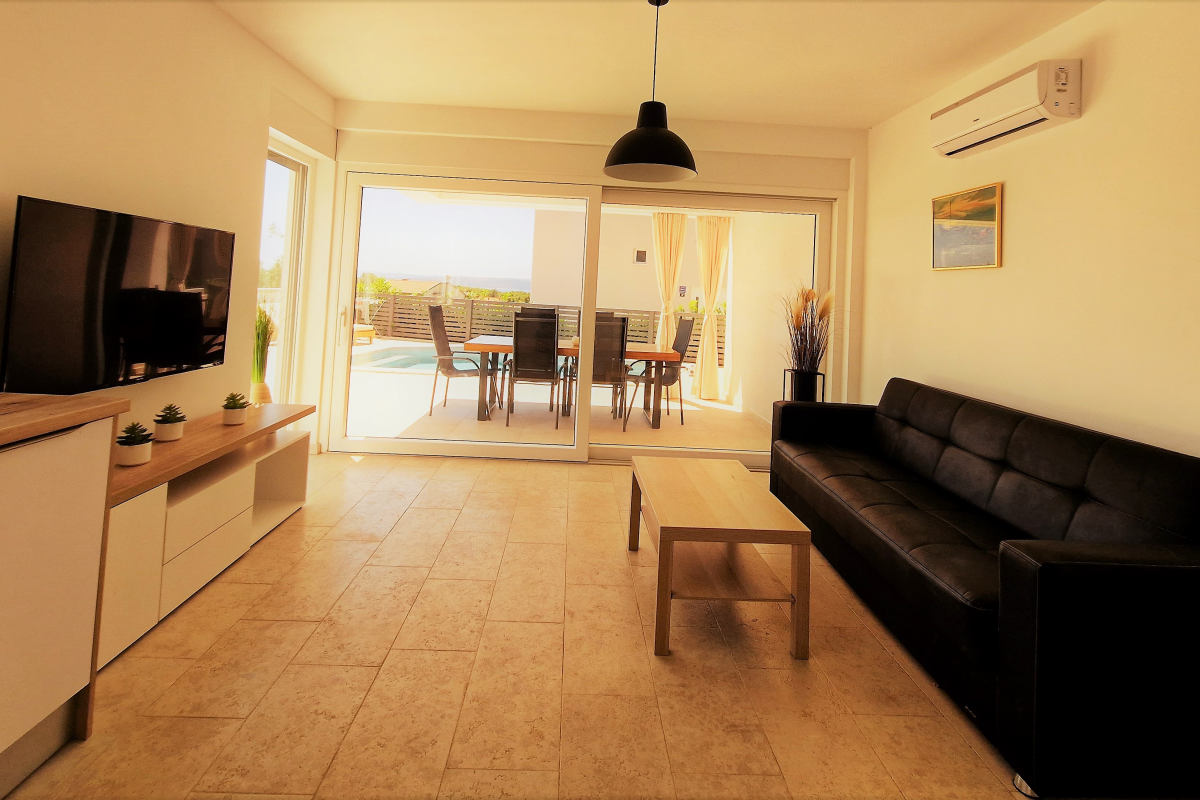 Mirni klimatizirani apartman sadrži dvije spavaće sobe s king-size krevetima i TV-om, dnevni boravak s kaučem, stolićem i TV-om ravnog ekrana. Blagovaonica je povezana s dnevnim boravkom kao i s kuhinjom. Kuhinja uključuje vlastitu perilicu posuđa i mikrovalnu pećnicu. U sklopu apartmana moguće je i opuštanje na terasi. U apartmanu su dostupni posteljina i ručnici.