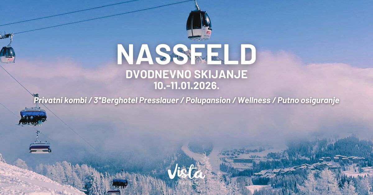Vodimo vas na dvodnevni izlet u Nassfeld, jedno od uređenijih i ljepših skijališta u našoj okolici. Sa 110 kilometara staza svih razina težine i uređenom infrastrukturom sa 29 modernih žičara i vučnica, u Nassfeldu se možete dobro zabaviti i kao početnik ali i profesionalac.
