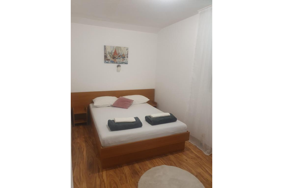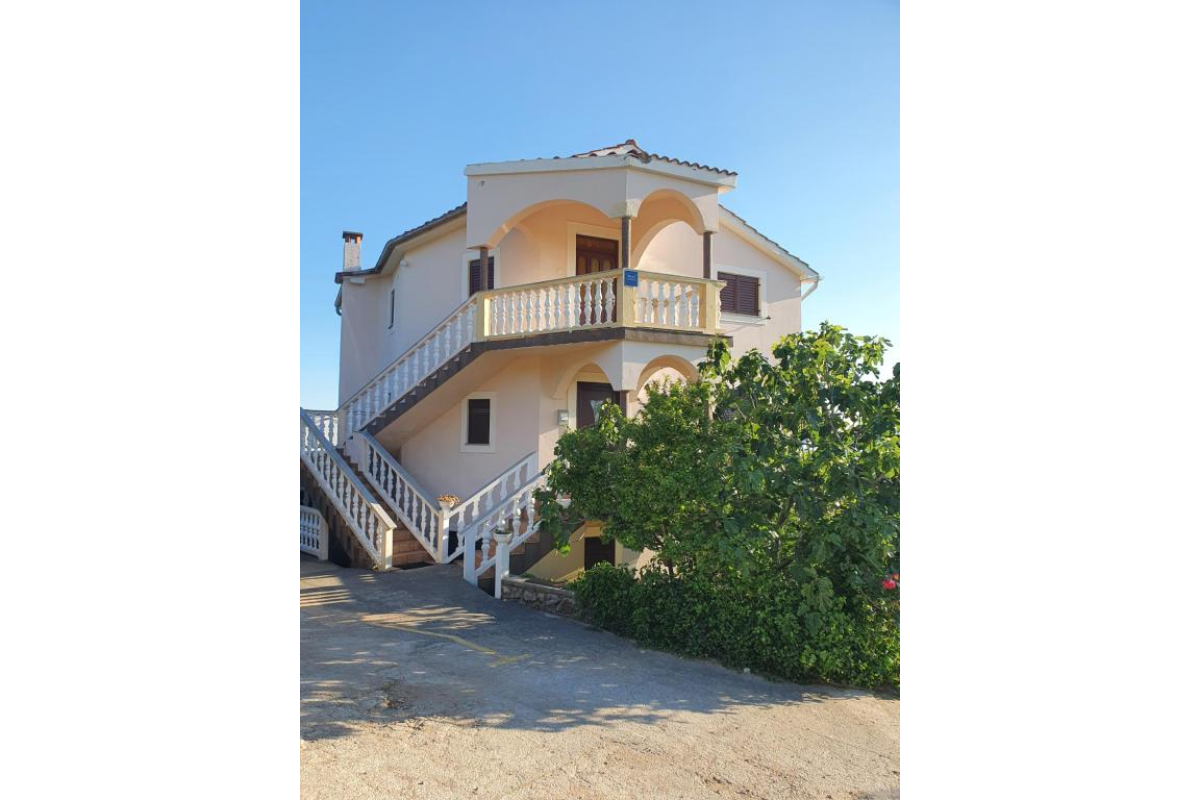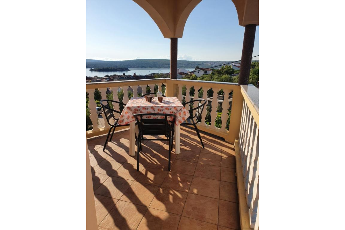 Un balcone più piccolo. di fronte all'ingresso dell'appartamento e un ampio balcone con una splendida vista sulla città di Punat.