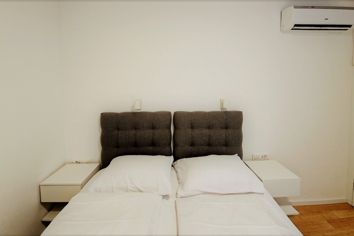 Questo tranquillo appartamento climatizzato contiene 2 camere da letto con letti king-size e TV, soggiorno con divano, tavolino e TV a schermo piatto. La zona pranzo è collegata al soggiorno e alla cucina. La cucina include la propria lavastoviglie e forno a microonde. All'interno dell'appartamento è anche possibile rilassarsi sulla terrazza. Asciugamani e lenzuola sono disponibili in appartamento.