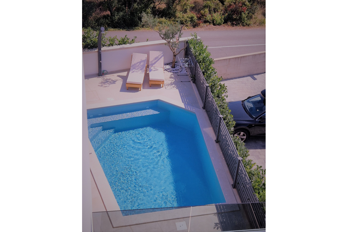 This newly built building is located in Punat, Croatia just 5 minutes on foot from beautiful beaches and warm sea. This apartment offers seasonal outside pool, bar, saloon, free WI-FI and beatiful unique sea view. It also offers beatiful garden and free private parking.